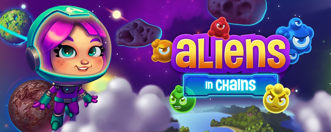 Ziel des Spiels „Aliens in Chains“ ist es so viele niedliche Aliens auf dem Spielfeld wie möglich zu befreien, indem du auf die Laser zwischen ihnen klickst. Dadurch lösen sich die zusammengeklebten Aliens voneinander und verschwinden vom Spielfeld.